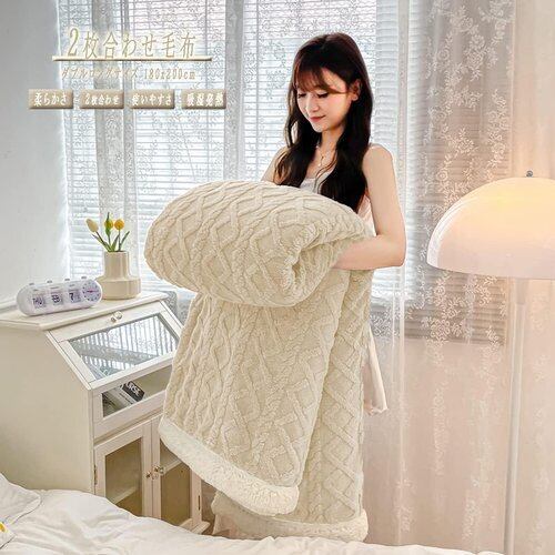 《新品》 毛布 ダブル 二枚合わせ 掛け毛布 冬用 暖かい 発熱 柔らかい 肌触りが良い マイクロファイバー 洗える 保温 抗菌 防臭 寒さ対策 防ダニ 北欧風 静電防止 180×200cm ベージュ 77