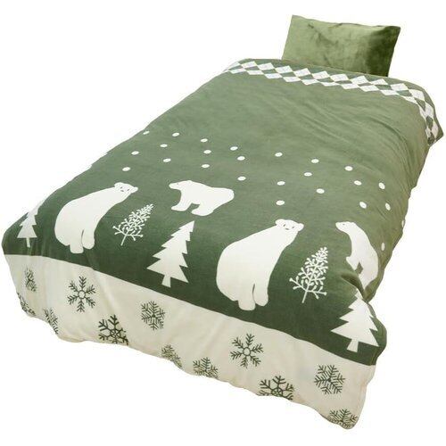 理想の生活館 掛け布団カバー フリース シングル 150×210cm 毛布 冬用 暖かい ふわふわ 洗える 掛け 布団 カバー あったか 冬 布団カバー こたつ 北欧 モスグリーン グリーン ポーラーベア 北極熊 しろくま 丸洗いOK 91