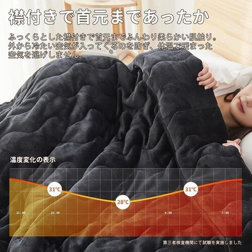 【三層構造で保温性が抜群】暖かいランネルと蓄熱中綿を重ねた3層構造で、蓄熱力が一般の毛布の2倍です。身体から発散される水分を熱に変える「吸湿発熱中綿」で、暖かい空気を含む、断熱効果が生まれることにより保温力がアップします。