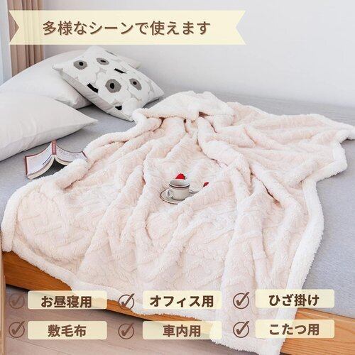 ★柔らかな肌触り★ 表面はふんわりとしたフリース素材、裏面はもこもこのシープボアを使用、ふわふわ柔らかな肌触りが魅力的で、肌が敏感な方や子供にもあんしんしてご使用いただける毛布です。