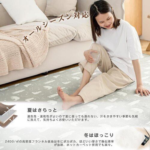 《新品》 Colorsroom カーペット ラグ ラグマット 2畳 洗える ラグ 絨毯 185×185cm 滑り止め付 抗菌 防臭 防ダニ オールシーズン 床暖房 ホットカーペット対応 ふわふわ肌触り フランネルラグ シロクマグレー 124