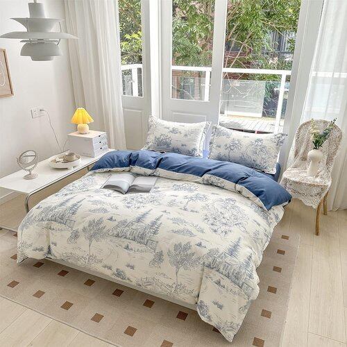 《新品》 BUKAROOM 布団カバーセット シングル3点セット 枕カバー 掛け布団カバー ボックスシーツ 寝具カバー 花柄 おしゃれ ブルー 掛カバー150*210cm 130