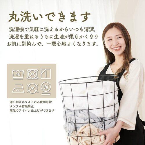 商品加工:ファスナーは端まで開き出し入れ楽々。6か所についた紐でふとんとカバーがずれにくいく、吸水、保湿の優れたなめらかな綿は、春 夏 秋 冬と通年お使いいただけます。