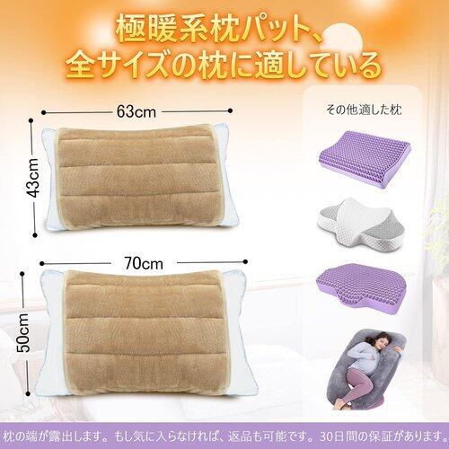 【大判枕パッド・全面保護】枕パッドのザイズは50x70cmあり、通常より大きくして、43X63CM/35X50CM/50X70CMサイズの枕に全部対応できます。 寝ている間に、発熱・保温・断熱が繰り返されるため、寒い冬でも暖かさをキープできます。