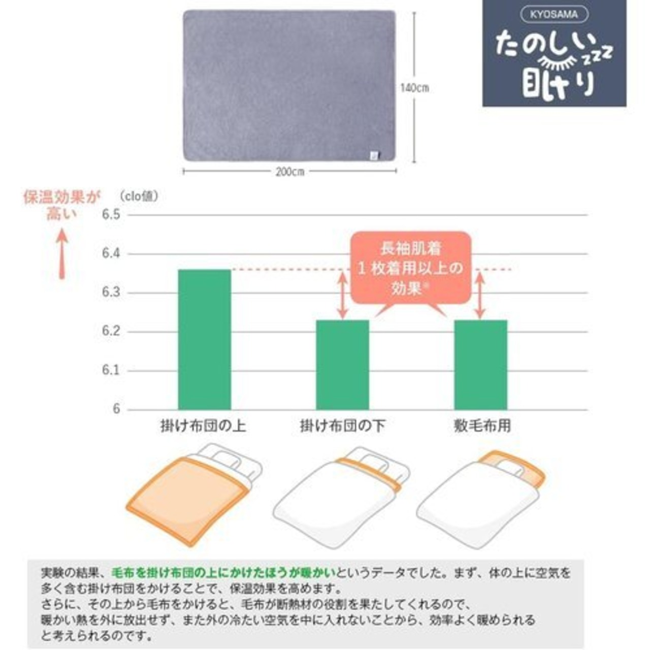 【冷房用毛布】シングル毛布の保温原理:①パイル糸の本数を元の3万本から6万本まで増やせたから。②パイル糸の長さを元の8mmから5mmまで短くにしたから。③裏面の白い波線柄パイルを追加複合させたから。前記の技術面の改善のため、体からシングル毛布まで込められていた空気が段々熱くなってきて、また密着したパイルに加え、熱も逃しにくくなり、ついでに毛布が掛けたところが暖かくなって来た。