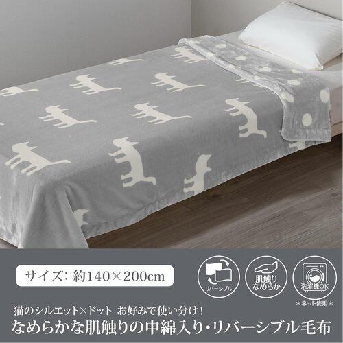 《新品》 西川 Nishikawa アツコマタノ リバーシブルケット シングル 洗える MT3655 シルエット猫 グレー FQ03905023 530