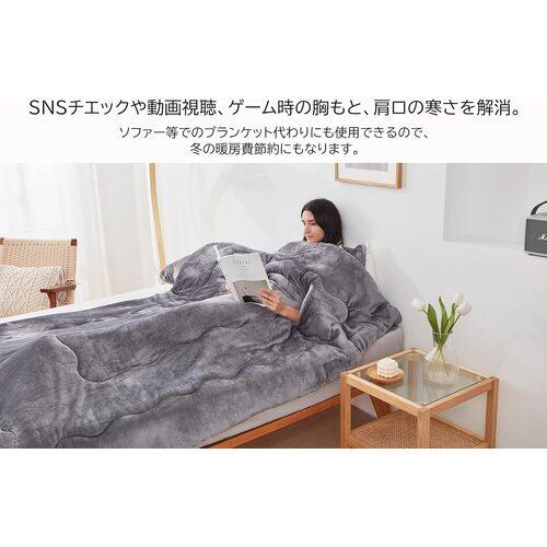 【二枚合わせで保温性抜群】:2枚合わせの毛布の中に、ポリエステル綿をたっぷり充填。高密度の極細繊維がふんわり空気をまとい、暖かさをキープ。スマホがいじれるアームホール搭載で、冷えやすい首元まで毛布をしっかり被りこんだまま快適にスマホが操作できる。