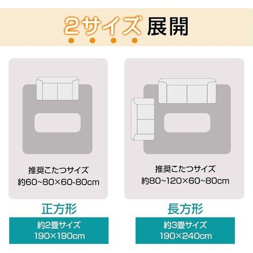 【商品仕様】こたつ敷き布団単品 約190×240cm 素材ー表側:フランネル、詰めもの:綿引き防止の不織布・ポリエステル綿、裏側:ポリエステル(滑り止め加工あり) ※こたつ台/こたつ布団は商品に含まれません。