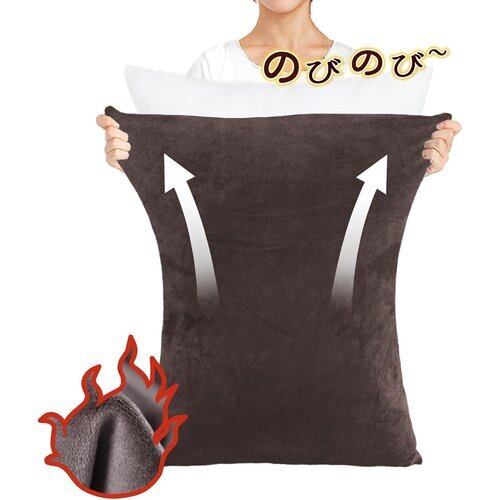 のびのび・接触温感 枕カバー あったか43×63㎝~50×70㎝枕適用 秋冬用 封筒式 静電気防止 3Dのびる マイクロファイバー すいしょうマイクロ シルクタッチ 着脱簡単 変形枕にもフィット 抗菌防臭 伸縮 洗える ブラウン LUCKINSLEEP 386