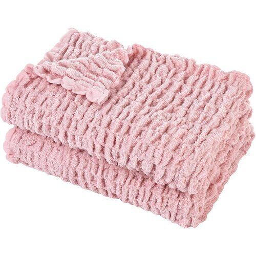 DIAOJIA タオルケット シングル ブランケット 綿 軽量 柔らかく肌触り 通気性 おしゃれ 四季 夏 タオルケット 洗える 吸湿速乾 抗菌防臭 大判タオルケット ピンク 140*190cm 402