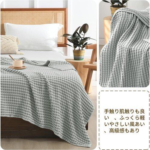 《新品》 ワッフルケット ブランケット ダブル タオルケット オールシーズン ひんやり リ バーシブル 綿50% 竹纤维50% 軽量 柔らかな肌触り 吸湿速乾 通気 春夏秋冬兼用 ひざかけ 肩掛け 140X190cmグレー 418