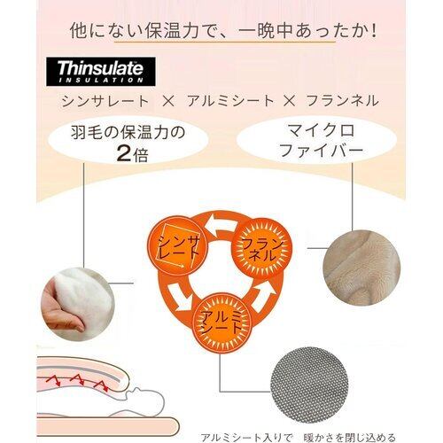 【商品仕様】掛け布団 シングル 150x210cm 重量:2.3kg「表地: フランネル ポリエステル 100%」「裏地:フランネル ポリエステル 100%」「詰め物: 中わた上:超微細繊維中綿 中わた:アルミシート 中わた下:シンサレート中綿 ポリエステル100%」「留めループ:8ヶ所」