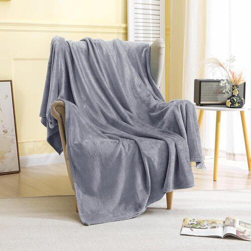 HEVUMYI 毛布 シングル ブランケット マイクロファイバー 暖かい ふわふわ 柔らかい肌触り フランネル掛け毛布 おしゃれ 洗える 軽量毛毯 毛抜けない オールシーズン 両面使える ライトグレー 140×200cm 475