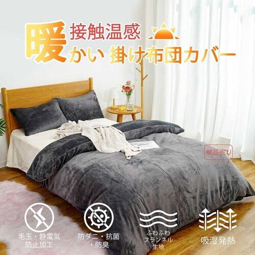 《新品》 Miohhur 掛け布団カバー シングル 冬 あったか フランネル 布団カバー 2WAY 毛布のようなカバー 接触温感 静電気防止 抗菌防臭 ふわふわ 蓄熱保温 速乾 丸洗い 8ヶ所布団留め紐付 毛玉が出来にくい YKK全開ファスナー 150×210cm カーボンブラック 517