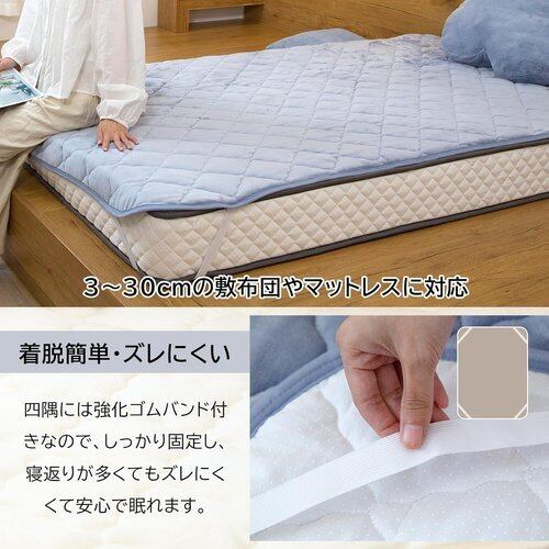 【強化ゴム付き】4つの隅にはゴムが付いており、寝ている間のズレを防止してくれます。敷布団やベッドにも簡単に装着することができます。