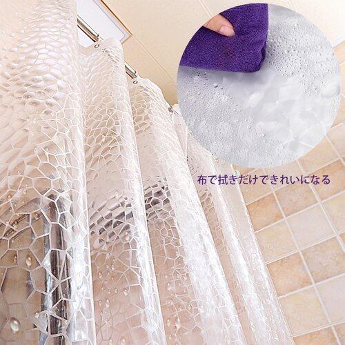 【防水防カビ】バスカーテン表面はナノ加工で、水やカビが付けません。手入れも簡単、汚れなどはタオルで拭いてすぐ乾燥し、きれいになります。またPVC素材を採用し、柔らかくて手触りがいいです。