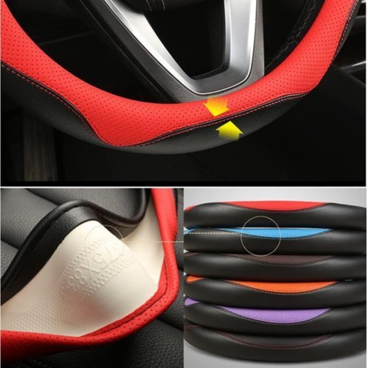《新品》 TATACLEA 車用 ハンドルカバー 軽自動車 本革 ステアリングカバー D型 38cm 滑りにくい 耐久 グリップ感上等 四季汎用 おしゃれ 握り心地よい ステアリングカバー オレンジ 30