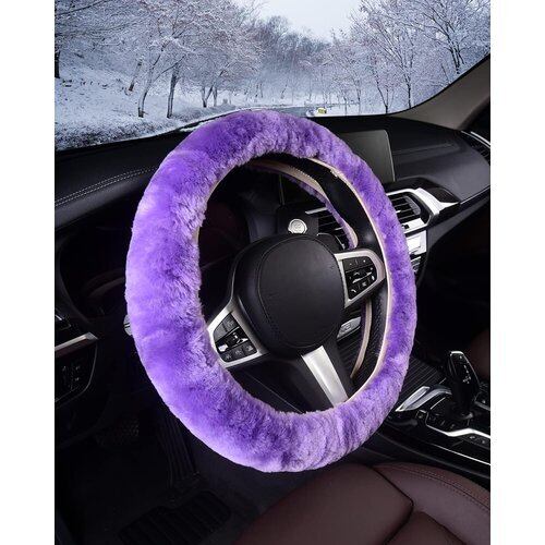 TOYOUN 羊毛ハンドルカバー 本物ウール ふわふわ 暖かい 冬用 普通車 軽自動車 シープスキンステアリングカバー Sサイズ36.5-37.9cm ユニバーサル汎用 もふもふ おしゃれ 柔らかい 可愛い パープル 48