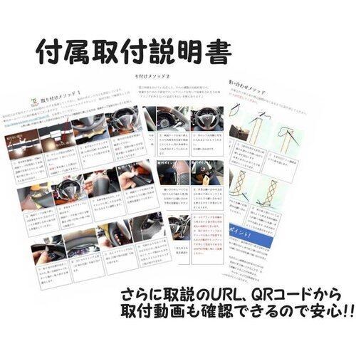 この商品はハンドルカバーではありません。正確な採寸と伸度を調節した専用本革で実現した究極の車種別専用設計DIY巻き替えキットです。 各ステアリングに合わせて独自の意匠ラインとすることでフィット感とデザイン性を向上させています。 装着は本体をあらかじめ付属の両面テープでステアリングに貼り合わせてミシン目の間に糸を通します。余った革はエアバックカバーの中にヘラを使って押し込むだけ、エアバックを外す必要はありません。