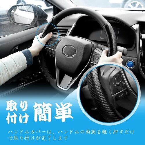 Hitchlike ハンドルカバー 車用 2個セット D型 ステアリングカバー カーボンファイバー おしゃれ 汚れ防止 滑り防止 取付簡単 軽自動車 普通車用 ブラック 201