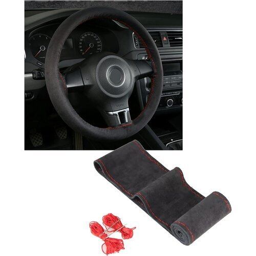 ハンドルカバー 編み込み式 ステアリングカバー スズキ ソリオ MA27S MA37S MA47S R2.12~/スイフト& スイフトスポーツ ZC##S/ZD##S H29.1~ /ハスラー MR92S MR52S R2.1~ スエード調生地 黒色 329