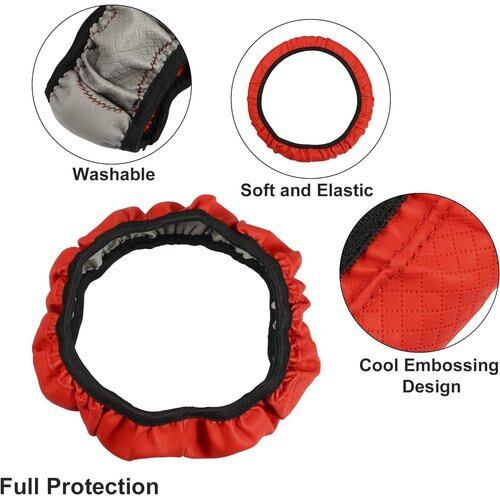 ACROPIX 車用ステアリングホイールカバー プロテクター 滑り止め ユニバーサル 合成皮革グリップ 38m 1個 レッド 354