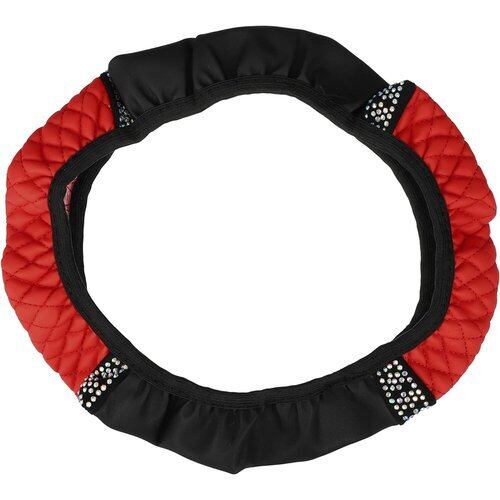 《新品》 ACROPIX 車のステアリングホイールカバー ラインストーン付き ユニバーサル 37-38 cm直径 レッド 1個 372