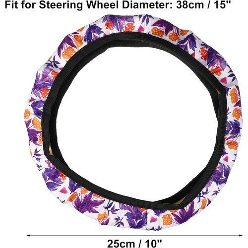 ACROPIX 車のステアリングホイールカバー ユニバーサル 花柄付き 37-38 cm直径 パープル 1個 378
