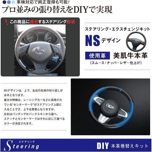 C-HR 10系 DIYステアリング本革巻き替えキット NSデザイン 1NS1T43左右黒バックスキン調×上下黒革×黒ステッチ×黒センター 396