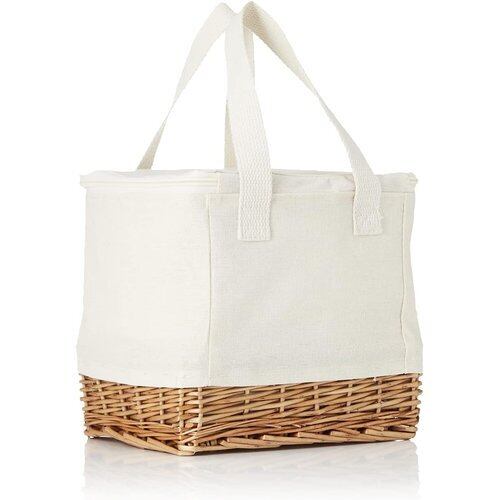 ンプルな欧文デザインが人気のボヌールシリーズのカゴ付き保冷バッグです。保冷剤を入れるポケット、出し入れしやすいコの字に開閉するファスナーなど機能性もバツグン。底の柳のカゴでしっかりと自立し強度もアップ。 カットケーキ1~2個用のサービス箱や、お弁当箱を持ち運ぶのにちょうどよいサイズ感です。