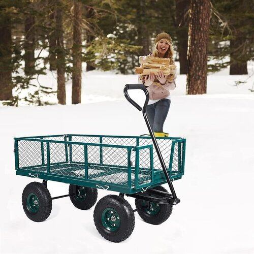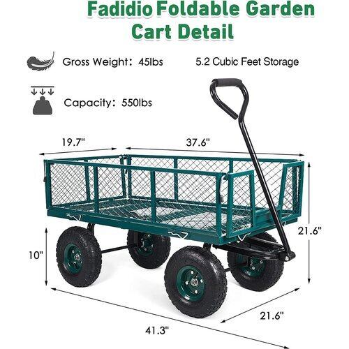 Fadidio ファディディオ スチールユーティリティワゴン ガーデンカート 取り外し可能な側面付き 屋外 耐荷重41インチ 550ポンド メッシュスチール タイヤ付き 出し入れが簡単 芝生の庭 ユーティリティカート 農場の牧場用 グリーン 191