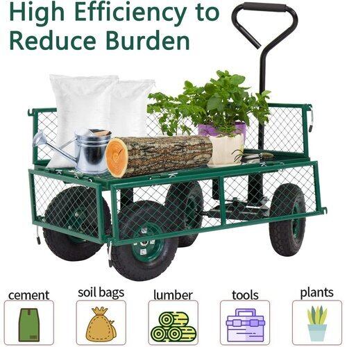 ガーデンユーティリティワゴンカート 高耐久 耐荷重650ポンド – ハンドルと取り外し可能なサイド付きローリングユーティリティワゴン アラウンドメッシュ 193