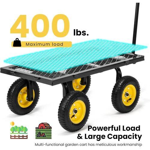 VIVOHOME 高耐久 耐荷重400ポンド メッシュスチール ガーデンカート 折りたたみ式ユーティリティワゴン 取り外し可能なサイド付き ブラック 206