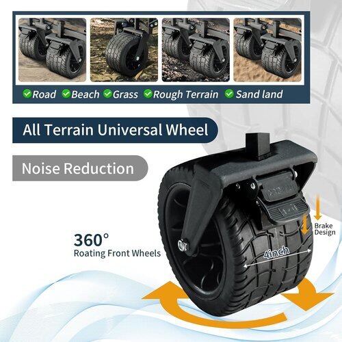高耐久折りたたみ式ワゴン 全地形対応10cmホイール付き 耐荷重330ポンド ポータブル150リットル 大容量ビーチワゴン 庭/アウトドア/キャンプ/ビーチスポーツ/食料品カートに 調節可能なハンドル ブラック 220